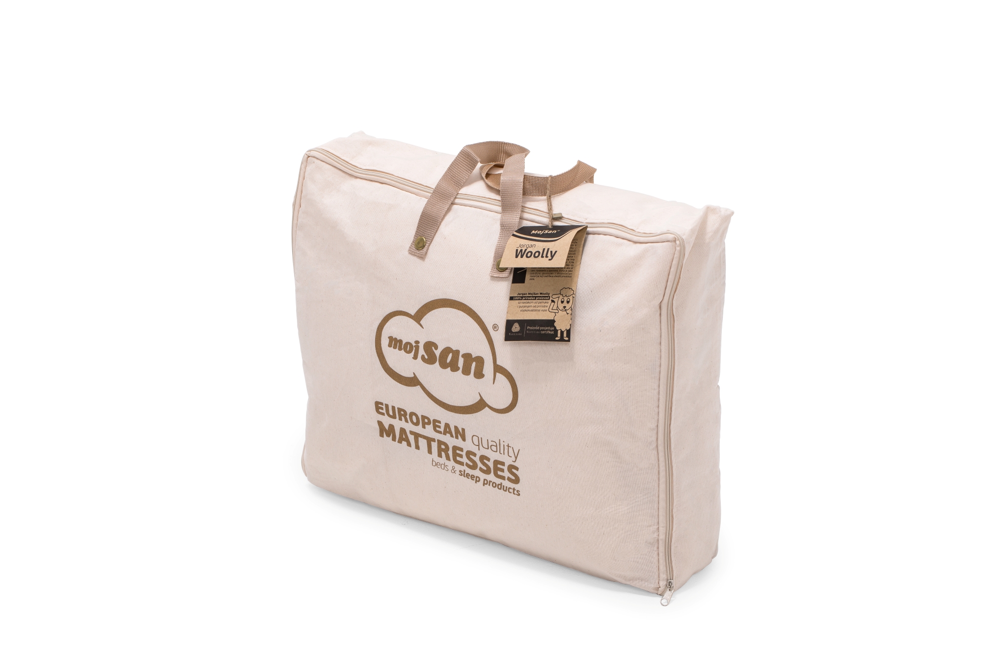 MojSan Woolly kolekcija proizvoda u osnovi ima vrhunsku WOOLMARK čistu novu vunu koja garantira savršene uslove za spavača koji preferiraju prirodan ambijent spavanja.