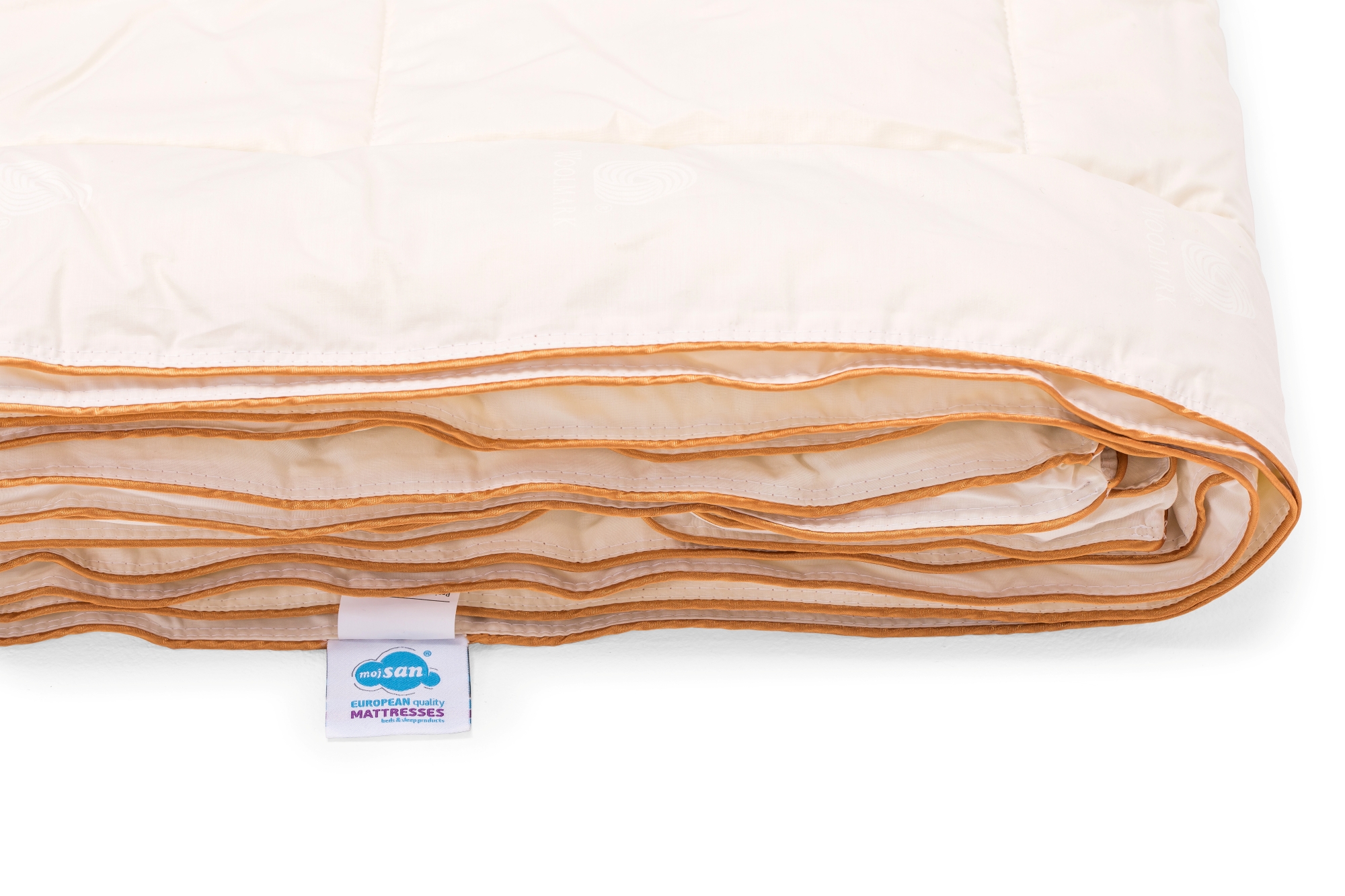 Vuna je prirodan, biorazgradljiv i obnovljiv materijal koji ne samo da pruža termoregulirajuću izolaciju u toplim ili hladnim uslovima nego također i regulira vlažnost zraka stvarajući savršene uslove za spavača. Vuna korištena za punjenja proizvoda iz MojSan Woolly kolekcije je certificirana od strane WOOLMARK company kao globalnog autoriteta na polju kreiranja proizvoda sa vunom za korištenje u sistemima za spavanje.